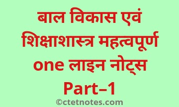 बाल विकास एवं शिक्षाशास्त्र महत्वपूर्ण one लाइन नोट्स Part–1